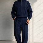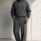 The Casual Vertical Stripe Matching Set is designed for relaxed comfort with a modern, casual look. Made from a lightweight blend of polyester, spandex, and rayon, the fabric offers a soft feel with added stretch for easy movement throughout the day. The vertically striped top features a quarter-zip closure and a clean faux chest pocket for subtle detail, while the matching pants are finished with an elastic waistband, internal drawstring, and functional pockets for everyday convenience. Versatile and easy to care for, this set is ideal for daily wear, casual outings, work environments, or travel.